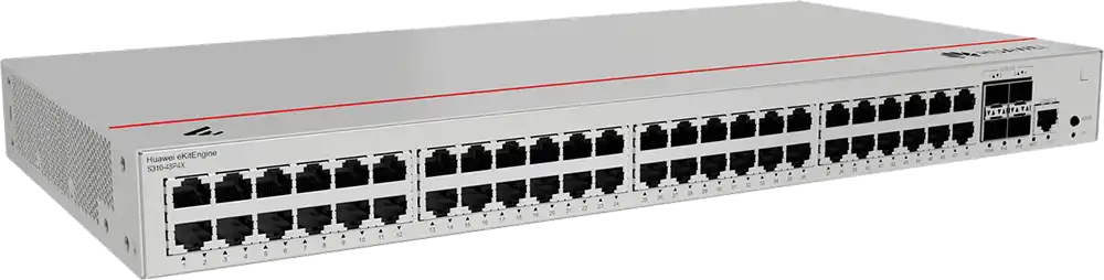 Huawei S310-48P4X è uno switch Layer 2+ completamente gestito progettato per ambienti aziendali, scuole, hotel, sistemi di videosorveglianza e contesti industriali. Dotato di 48 porte PoE+ e 4 uplink 10GE SFP+, combina elevate prestazioni, sicurezza avanzata e gestione intelligente della rete.